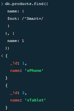 Dokumen yang diambil tidak boleh memenuhi kondisi yang diberikan dalam `$not`.